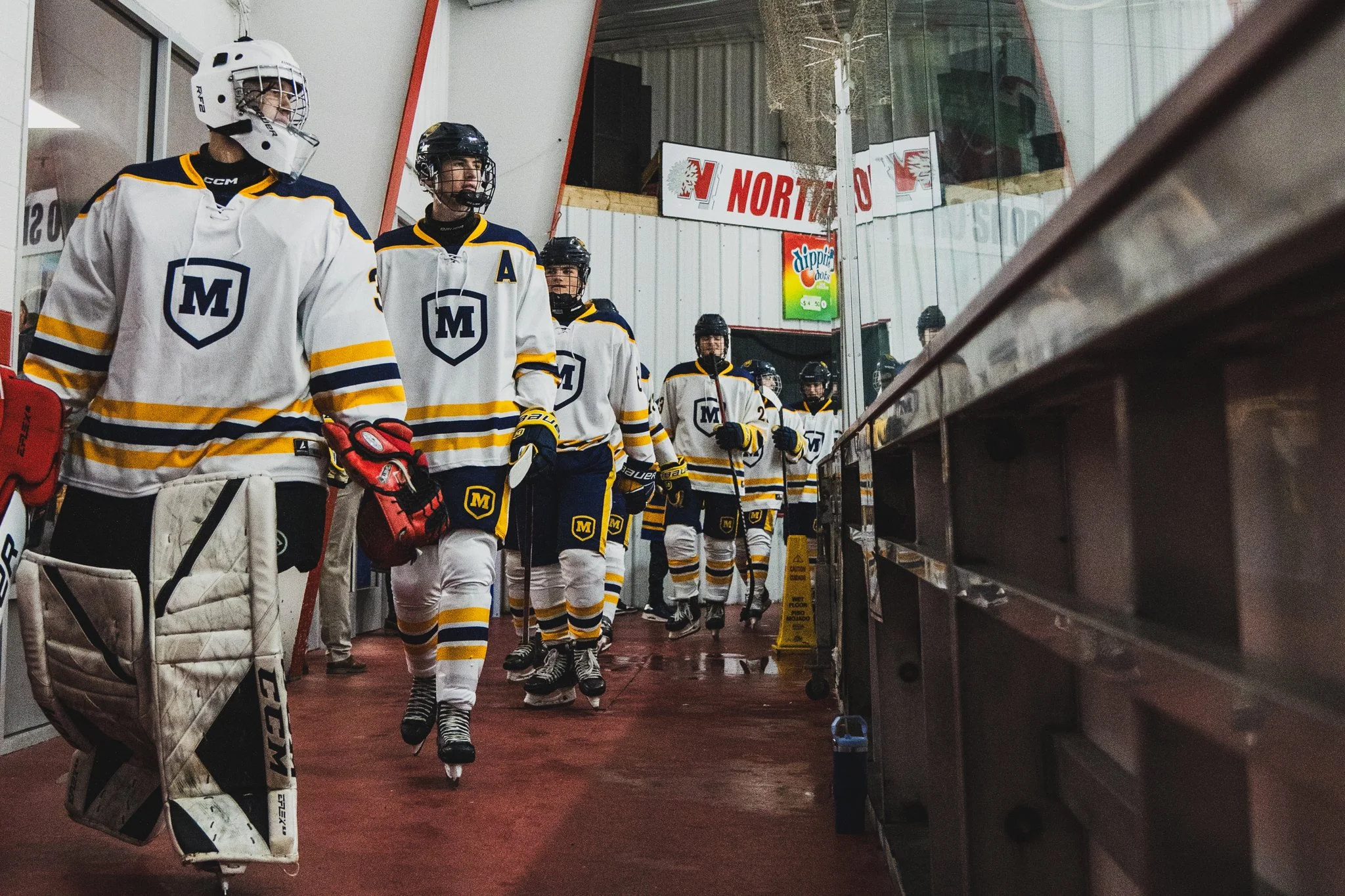 CLACK! Hockey sticks clash against each other amid the face off, it’s a scramble for possession of the puck. Shoves, hooks, and trips fly everywhere; the puck squeaks out on the end of a blue and gold jersey’s stick. He skates across the ice with some mix of elegant grace and aggressive intent, he’s moving fast. Just as he comes shoulder to shoulder with the other team, he slams on the breaks, spraying ice onto the boards and leaving the opposing skater looking like a baby giraffe on ice. The opportunity for a goal finally opens up. The teeth of the front of the skate dig into the ice before a sprawling push, propelling him towards net. It’s a lightning-fast moment but it requires incredible precision. The shot is a culmination of the energetic and fast paced nature of the sport itself, pitting precision right next to speed and power. The leg kicks up, the body twists to rotate, and the arms swing all the way through the shot. The puck can fly! Moeller goal! The puck flies into the back of the net, right past the goalie’s helmet. Cheers erupt from the bench as the players on the ice celebrate, huddling amongst the hugs, high fives, and helmet slaps . But the party isn’t over, everybody’s hands spill over the bench to give congratulatory high fives to the players passing at high speed. Moeller hockey was smooth skating.